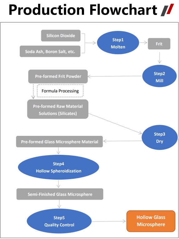 Il metodo di fusione allo stato solido, noto anche come metodo in fase solida o metodo della polvere di vetro, utilizza la silice (sabbia di quarzo) come materia prima e aggiunge materiali ausiliari come carbonato di sodio, carbonato di calcio e borato. Il vetro viene fuso ad alta temperatura in un forno, quindi macinato in polvere e svuotato in sfere ad alta temperatura.